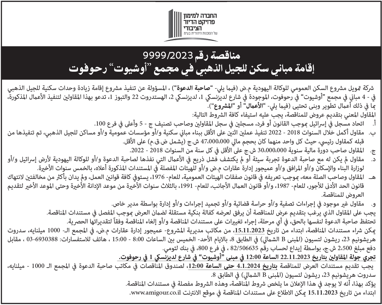 מכרז 190/2025- מתן שרותי אחזקה לנכסים המנוהלים על ידי עמיגור  ניהול נכסים בע"מ מאזור אשקלון (במרחב הצפוני)